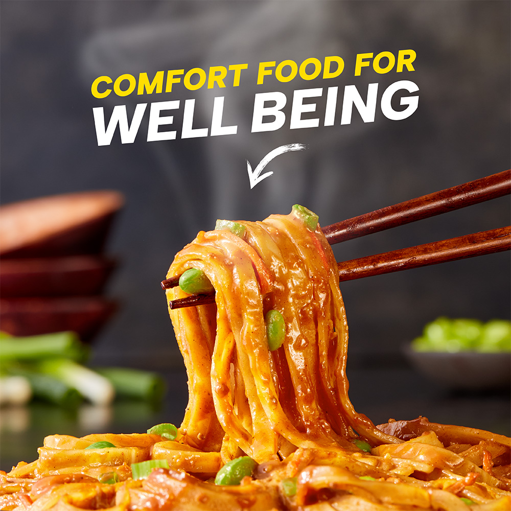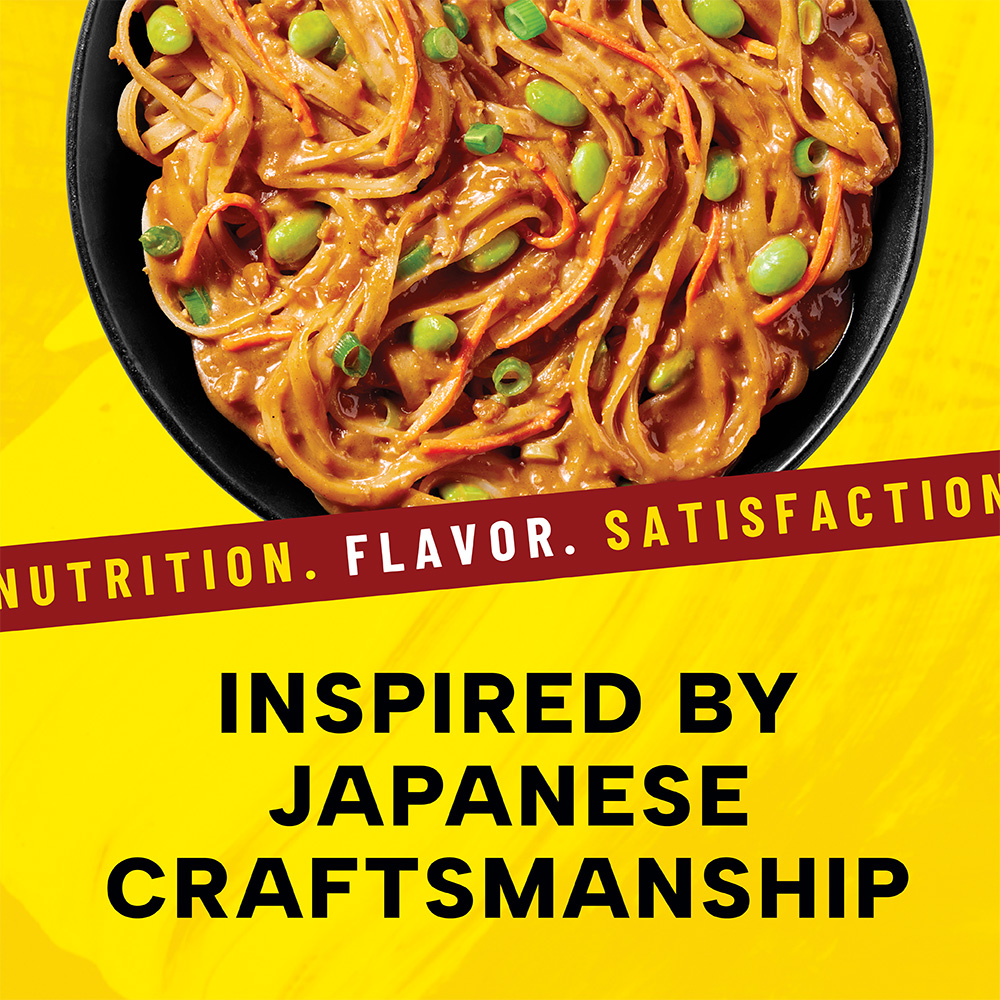 Tender dan dan noodles covered in a spicy and savory sesame sauce with edamame and scallion; powered up with protein, fiber and all 27 essential vitamins and minerals