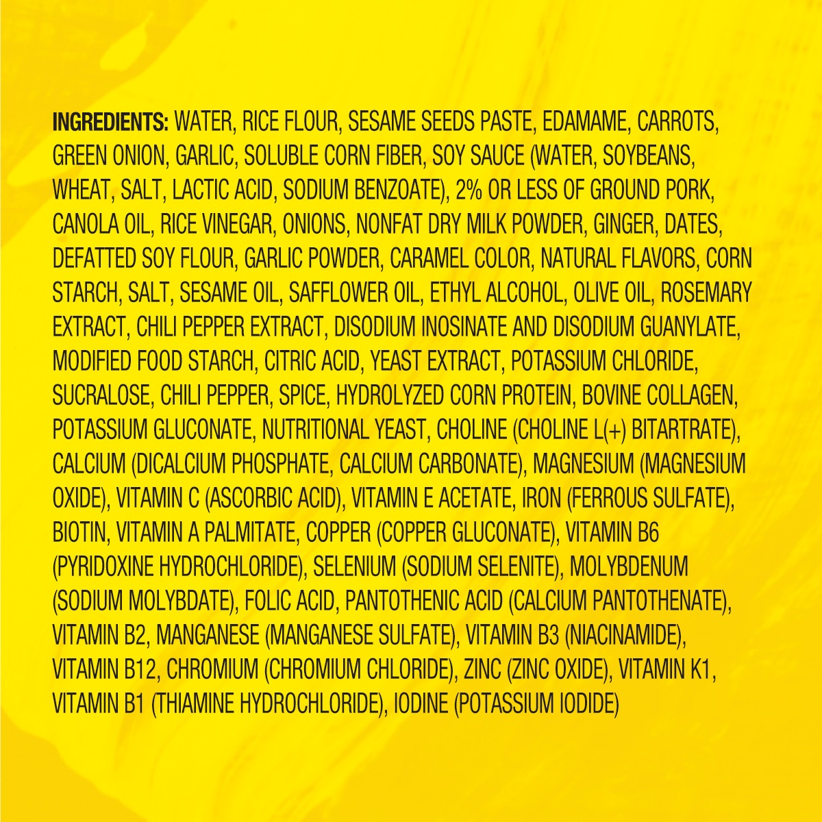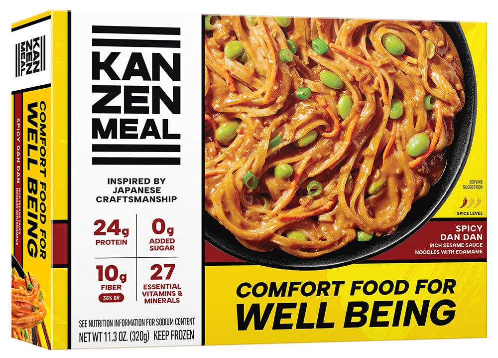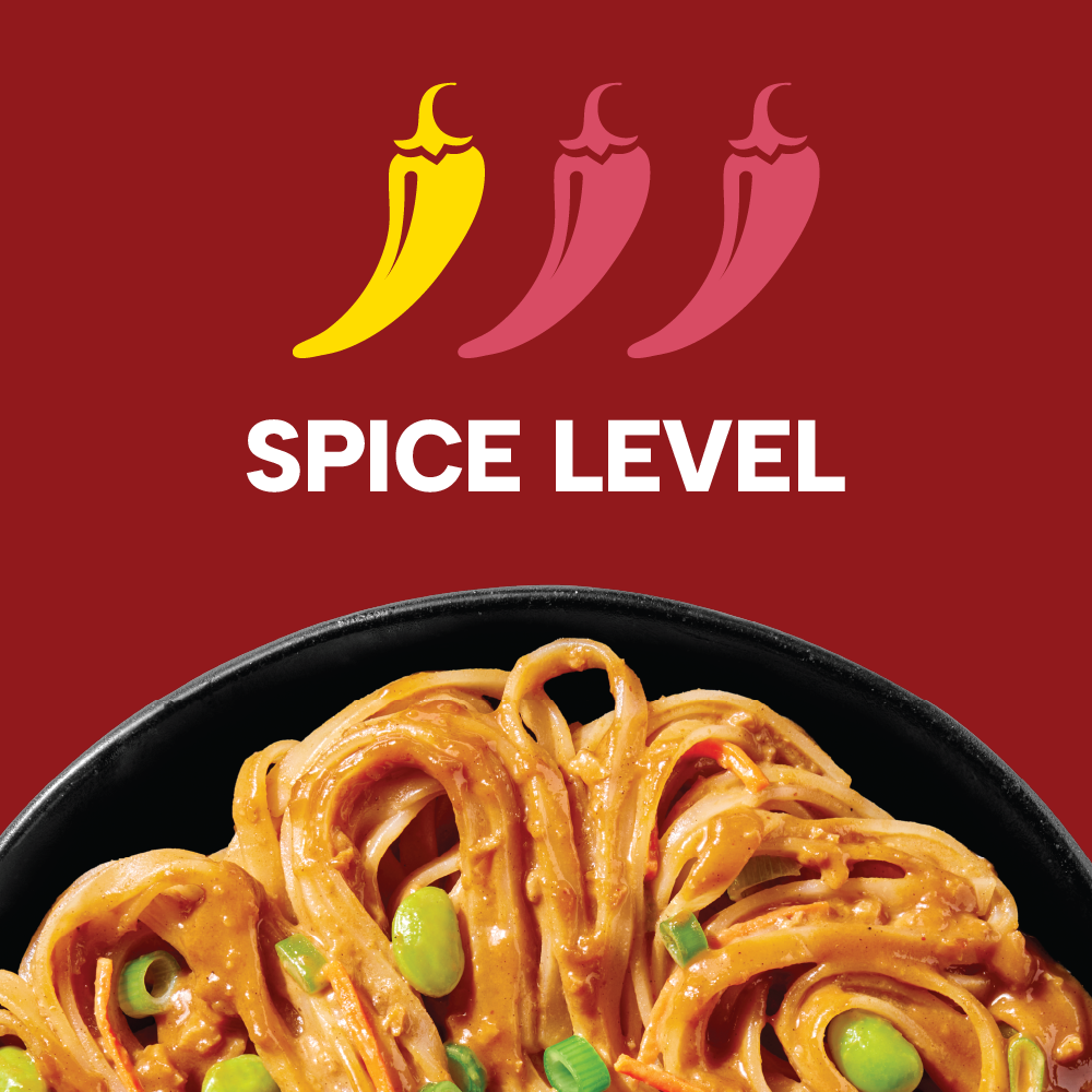 Tender dan dan noodles covered in a spicy and savory sesame sauce with edamame and scallion; powered up with protein, fiber and all 27 essential vitamins and minerals.